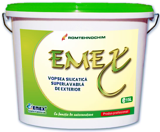 Vopseaua Lavabila Emulsionata Silicatica de Exterior “Emex” este o vopsea hidrosolubila profesionala, avand la baza substante anorganice (silicati - in principal silicat de potasiu), pigmenti si aditivi speciali, folosita in special la protectia si decorarea suprafetelor exterioare in restaurarea cladirilor de patrimoniu, monumente istorice si consolidarea suprafetelor vechi. Are grad foarte mare de alb, o protectie excelenta, o buna rezistenta la saponificare si aspect neted. Pelicula de vopsea nu permite murdariei sa adere la suport, si se poate intretine prin spalare repetata. Este disponibila numai in nuante stabilite de producator.