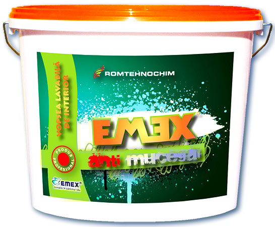 Vopseaua Lavabila Antimucegai “Emex” este o vopsea emulsionata, calitativ superioara, avand in compozitie dispersii apoase de rasini sintetice, pigmenti, materiale de umplutura si aditivi specifici, cu adaos de biocizi ecologici, de ultima generatie, pentru combaterea microorganismelor. Aplicarea corespunzatoare a acestei vopsele are ca rezultat obtinerea unei pelicule aderente, acoperitoare si rezistente la uzura, fara defecte de aspect, avand si avantajul unei protectii eficiente impotriva fungilor si mucegaiurilor. Este disponibila in diverse nuante, conform paletarului de culori, sau executate la cerinta beneficiarului.
