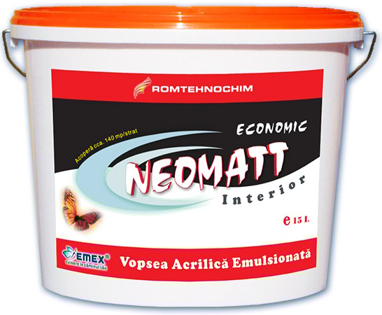 Vopseaua Lavabila Economica de Interior Interior “Neomatt”, este destinata pentru utilizarea in constructii, pentru decorarea suprafetelor interioare renovate sau noi cum ar fi pereti, tavane, etc., si sanitizarea acestora
